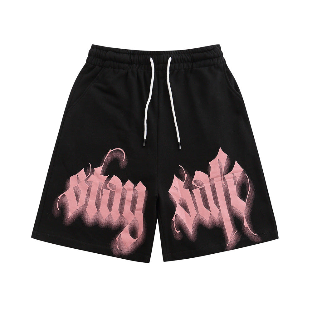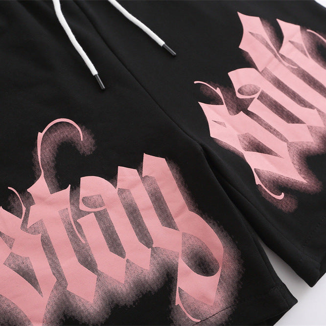 American Street Style Straight-Leg Shorts Men's Summer INS High Street Punk Loose Drawstring Elastic Waist Knee-Length Pants