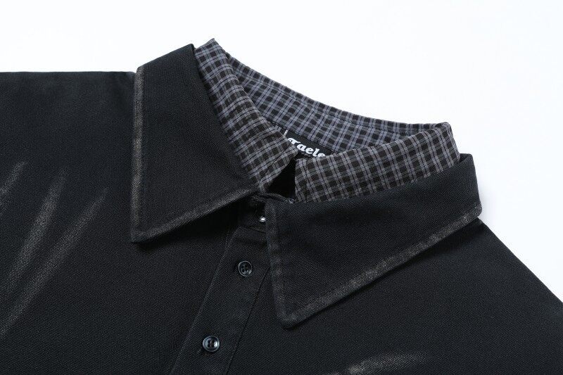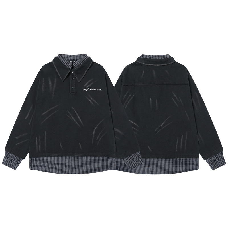 Fake two irregular washed spliced shirts for men