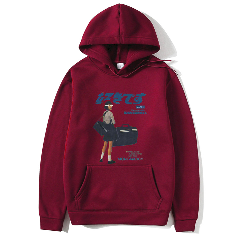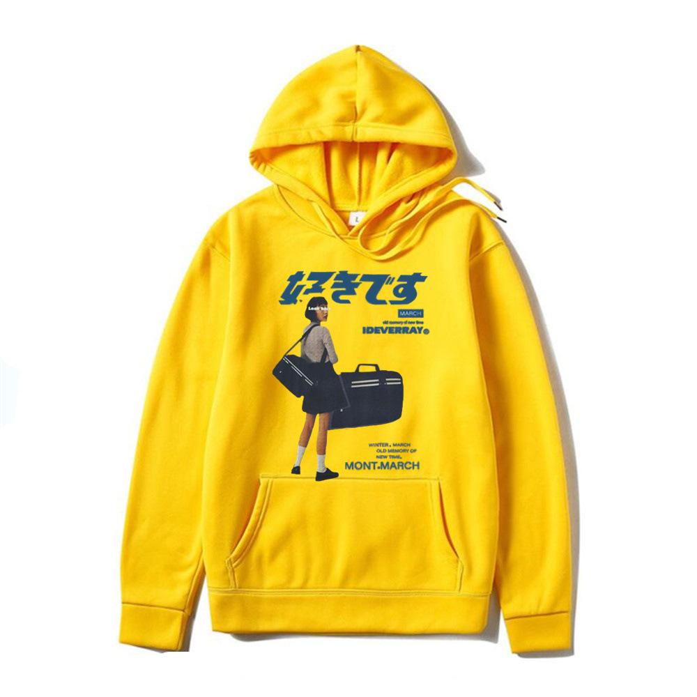 Japanese character printed casual hoodie for men and women, loose couple hooded hoodie