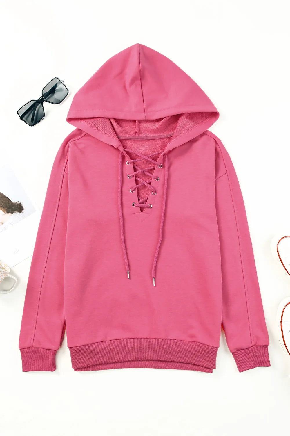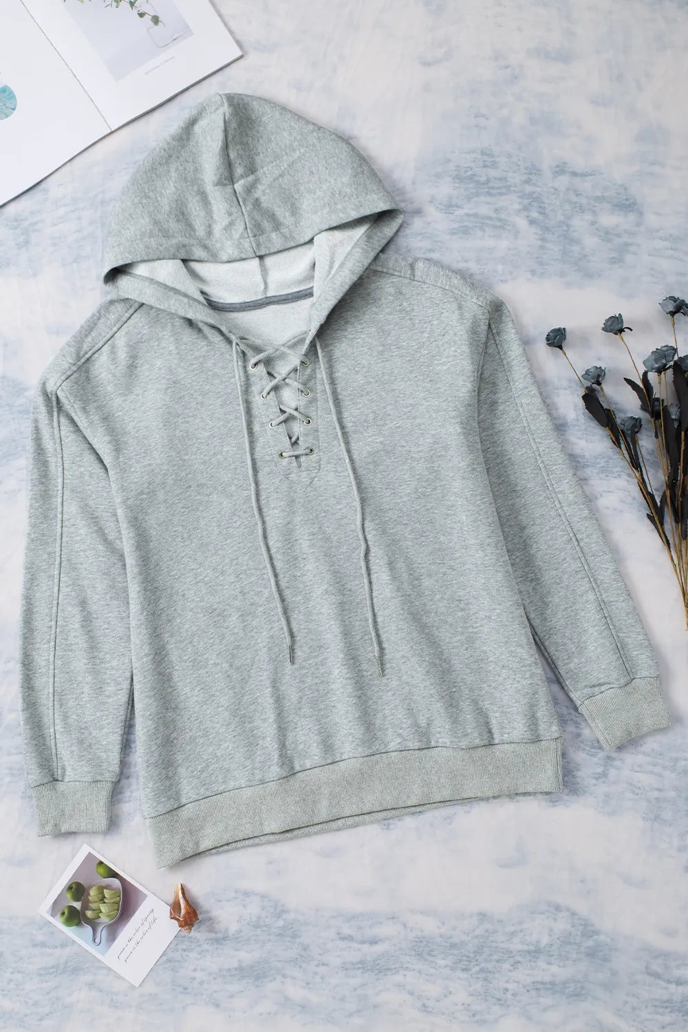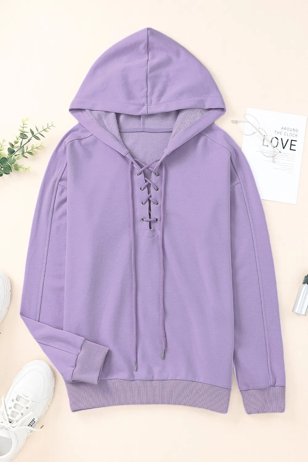 Lace-Up Dropped Shoulder Hoodie