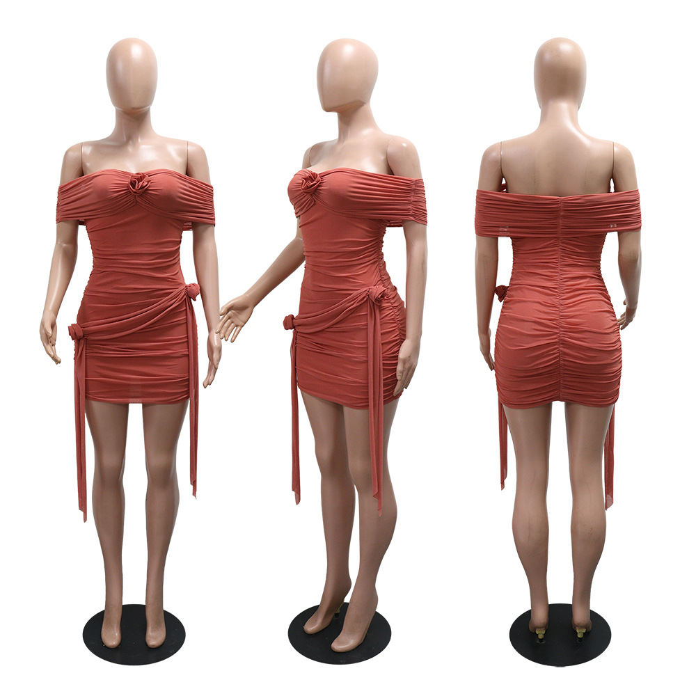 One-Shoulder Solid Color Bodycon Dress Short Skirt Women's Clothing