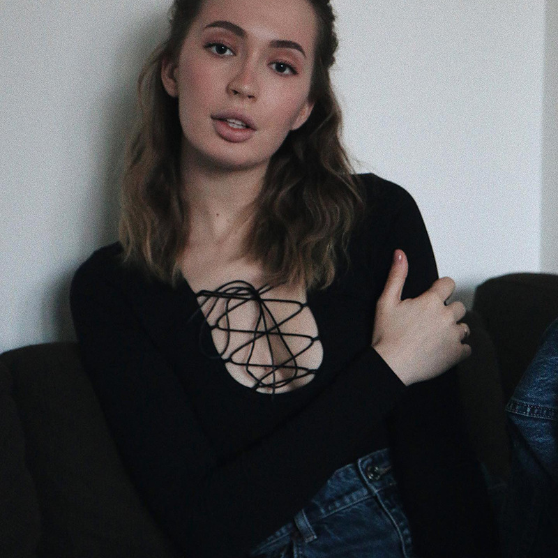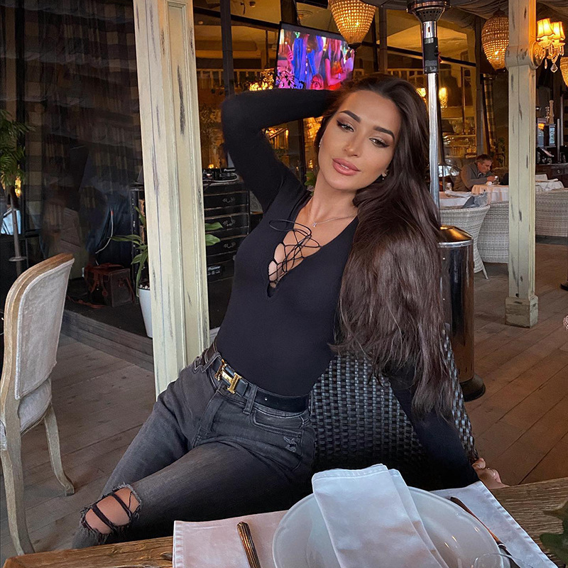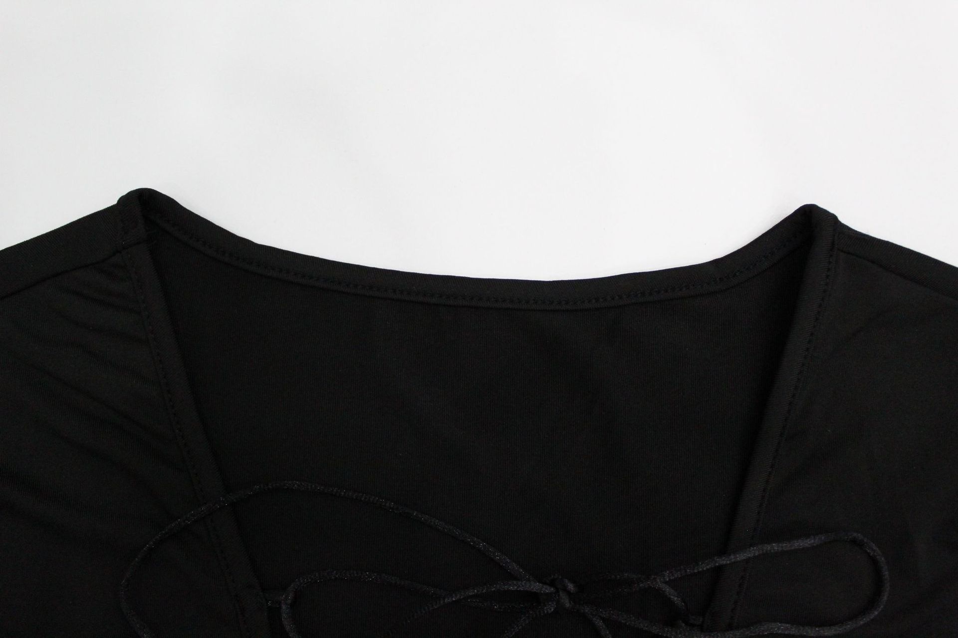 Solid color long sleeved chest hollow lace up sexy spicy girl tight jumpsuit