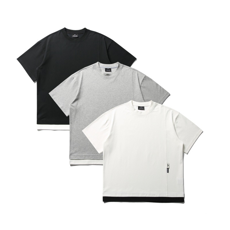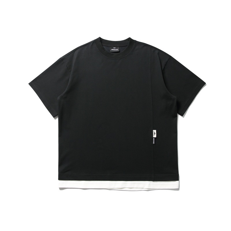 Splicing fake two short sleeved men's loose five quarter T-shirt