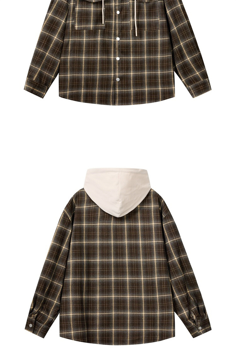 Striped checkered cardigan fake two hooded men's and women's shirts