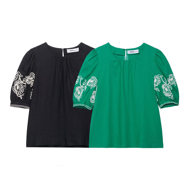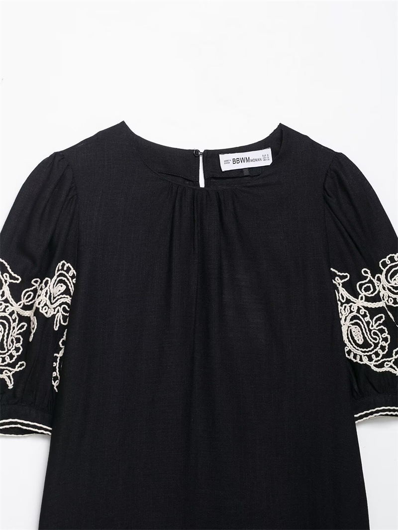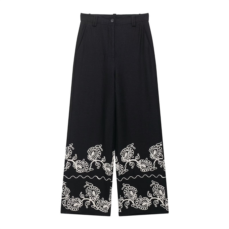 Summer New Style Women's Fashion Casual Short Sleeve Embroidered Top Wide Leg Pants