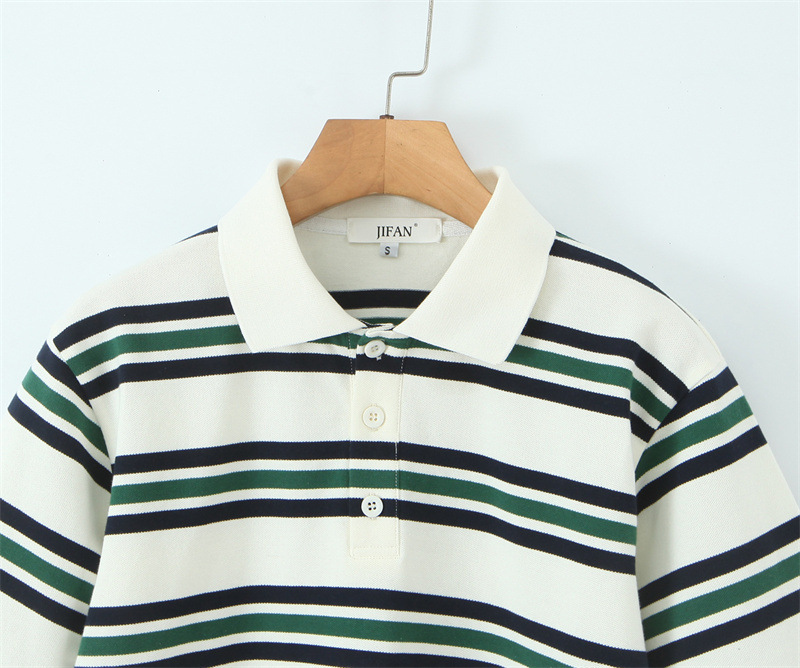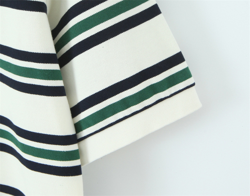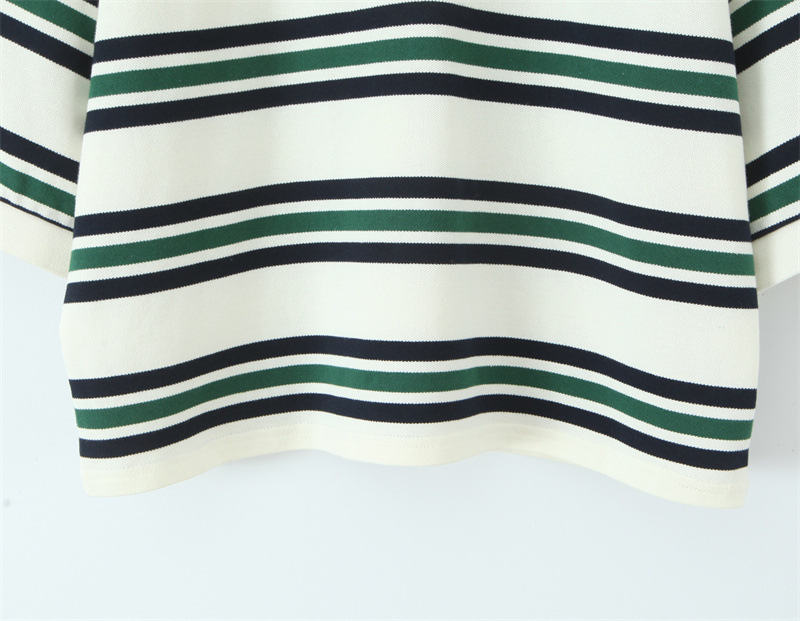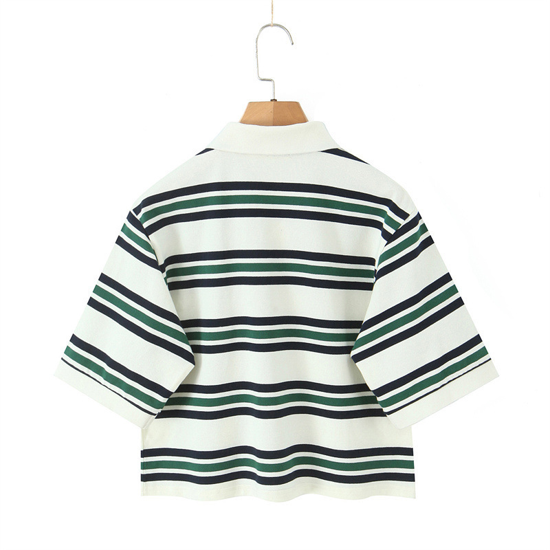 Summer New Women's Style Striped Polo Collar Loose T-Shirt Top
