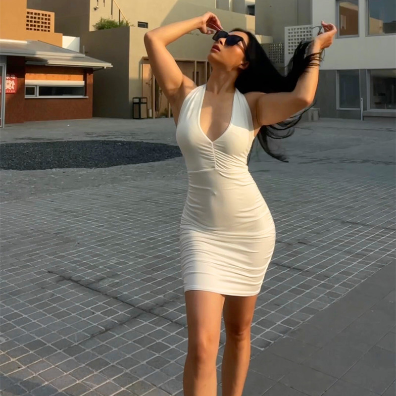 Summer Women's V-neck Low cut Hanging Neck Tight Dress