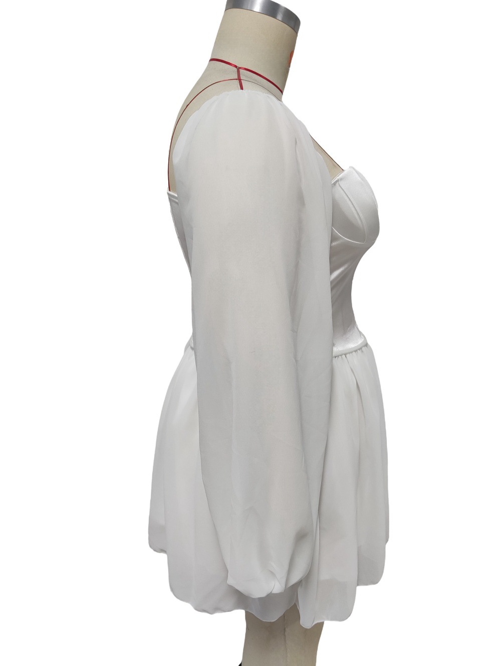 Women's Dress New Arrival Strapless Square Neck Mesh Splicing Satin High Waist A-Line Dress